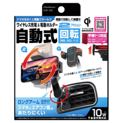 KW-32. Qi自動開閉ホルダー 回転 手帳対応 ロングアーム エアコン取り付け