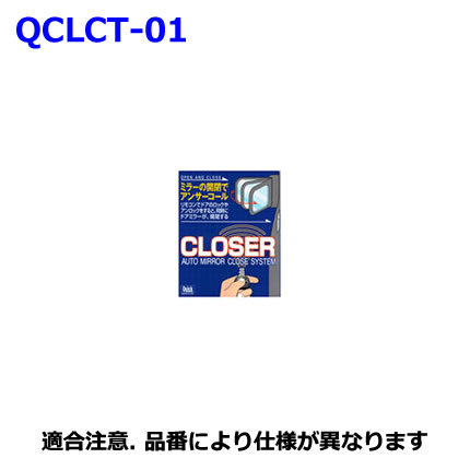 ・ クローザー(ドアロック連動ドアミラー自動格納装置)は、条件を満たした純正キーレスエントリー車の電動格納式ドアミラー車にご利用いただけます。