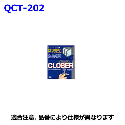 ・ クローザー(ドアロック連動ドアミラー自動格納装置)は、条件を満たした純正キーレスエントリー車の電動格納式ドアミラー車にご利用いただけます。