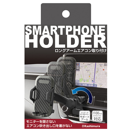 ・ ロングアーム式のエアコン取り付けスマホホルダー。