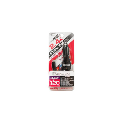 ・ 車のシガーライターソケットから、LightningコネクタのiPad/iPhone/iPodを2.4Aで充電可能なDC充電器。