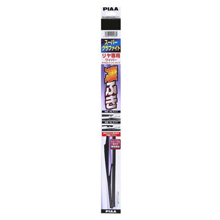 ・ リヤ専用ワイパー(スーパーグラファイト)は、ゴム表面にグラファイトコーティングを施すことによりガラス面との摩擦抵抗を軽減しスムーズな動きを実現。