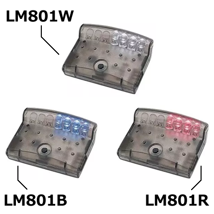 ・ LM801シリーズは輝度LED7個をコンパクトで強く、オシャレなケースに納めた威嚇光型防犯装置です。